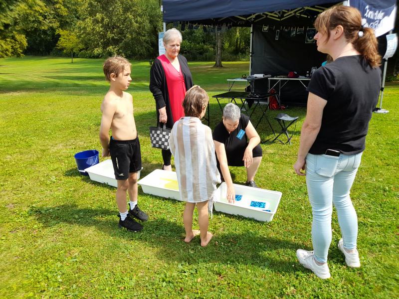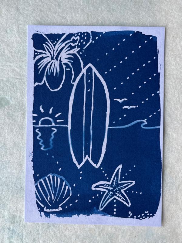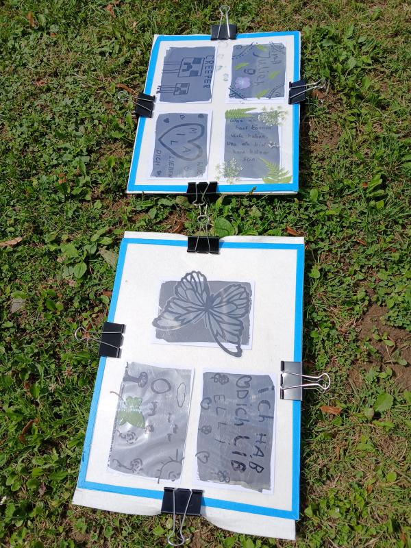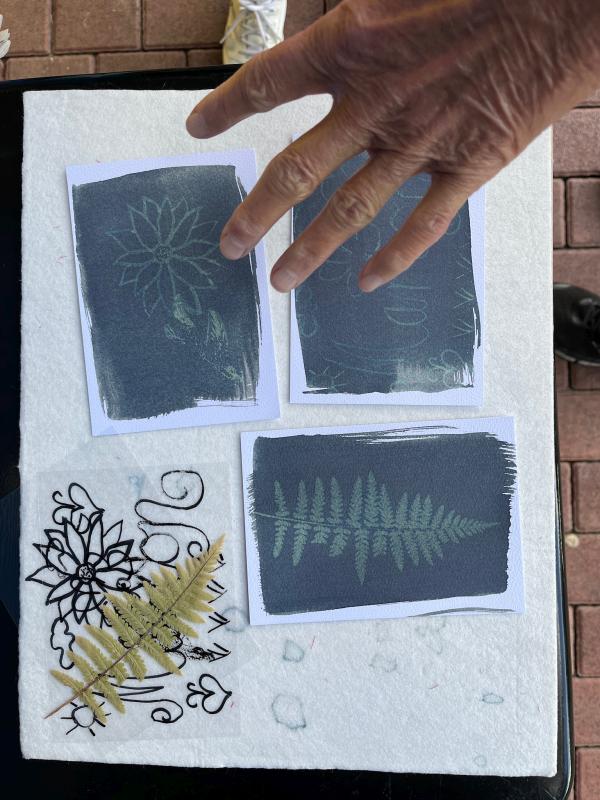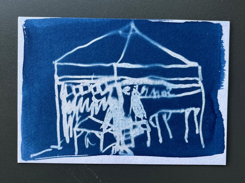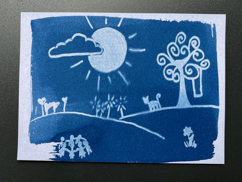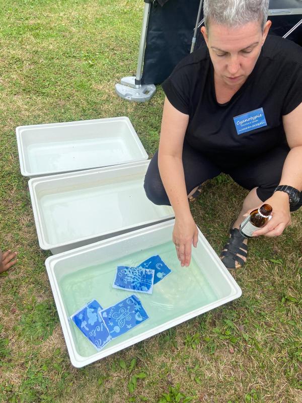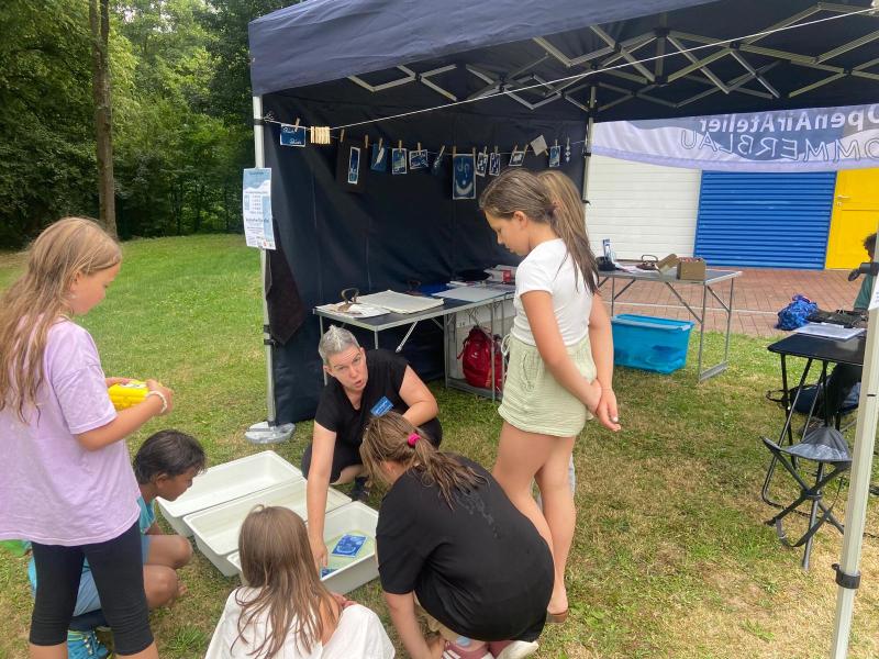Seit Jahren beschäftige ich mich jetzt schon mit einer alten Technik – der Cyanotypie – einem fotografischen Edeldruck. Hier hatte ich nun die Gelegenheit es Vielen auch eher spontan zu zeigen und ihnen anzubieten, es auch selbst auszuprobieren.